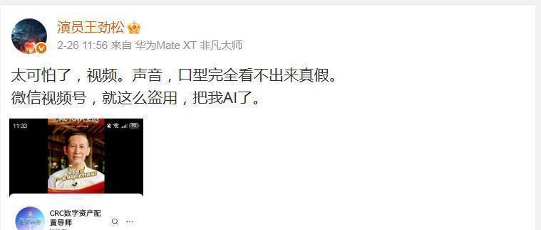 老戏骨王劲松在微博里表达,自己被AI技术盯上了,不仅肖像和声音被盗用,就连口型都能完美还原,造假的水平高得令人毛骨悚然,真是让人感觉挺吓人的。