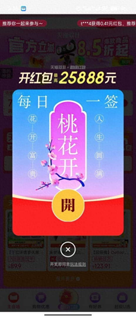 今年天猫双11官方主推红包口令是“开心就好11”。打开淘宝或天猫App,在顶部搜索框输入“开心就好11”即可跳转至官方红包领取页面。每日限领1次,最高金额25888元,部分用户邀请2人助力可额外领取1次。